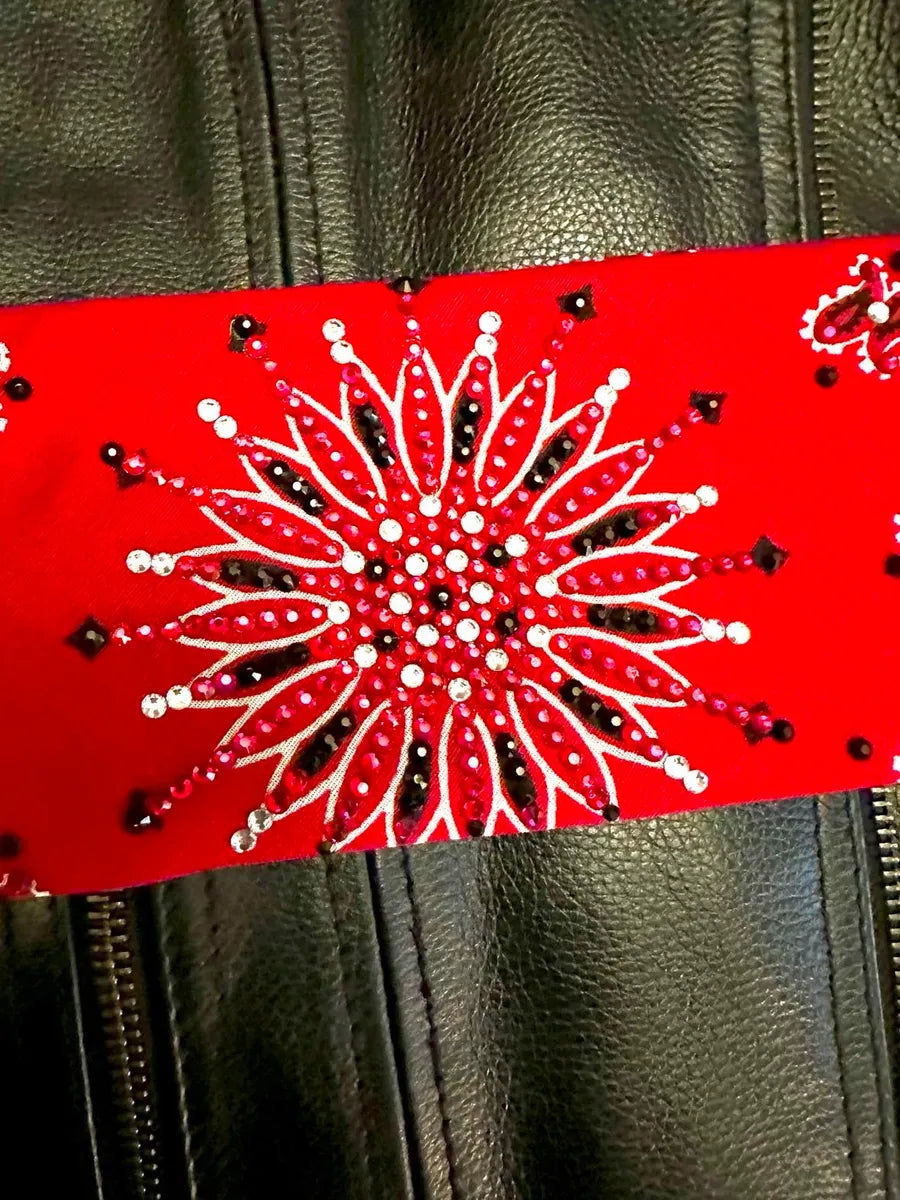 Black Biker Bandannas Beautiful black bandannas adorned with cool charms, patches, glitter lettering and crystals. Limited quantity so grab then while we have them.