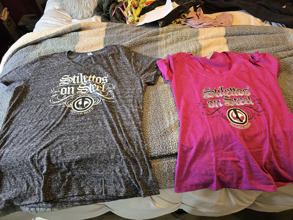 Fitted for female motorcycle riders. Deep V neck, long tapered torso. This is the shirt that stays put in the wind. Curve hugging and long waisted. Safe to straddle your bike and not show off all your assets.