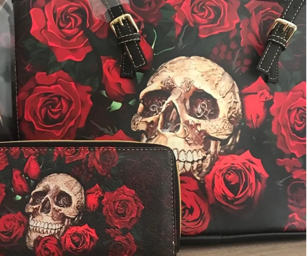 SKULL & ROSES Purse and Wallet Set
