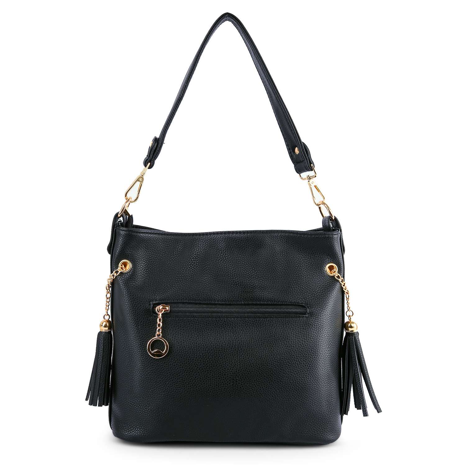 An effortlessly cool silhouette, this fashion hobo is made in a soft faux leather and features a beautiful rhinestone wings design.
